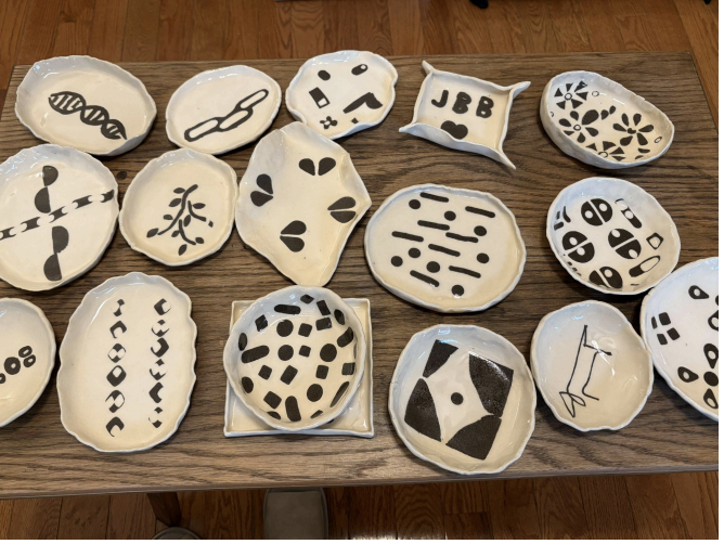 In this beginner-friendly workshop, participants will use paper stencils to create bold surface designs on hand-built ceramic plates. By layering patterns with underglaze or slip, students will explore texture, repetition, and positive and negative space to transform simple forms into visually compelling pieces.